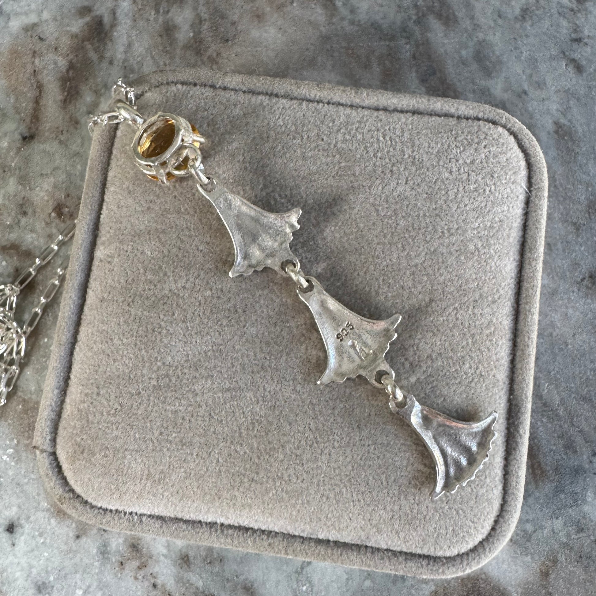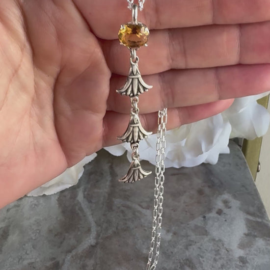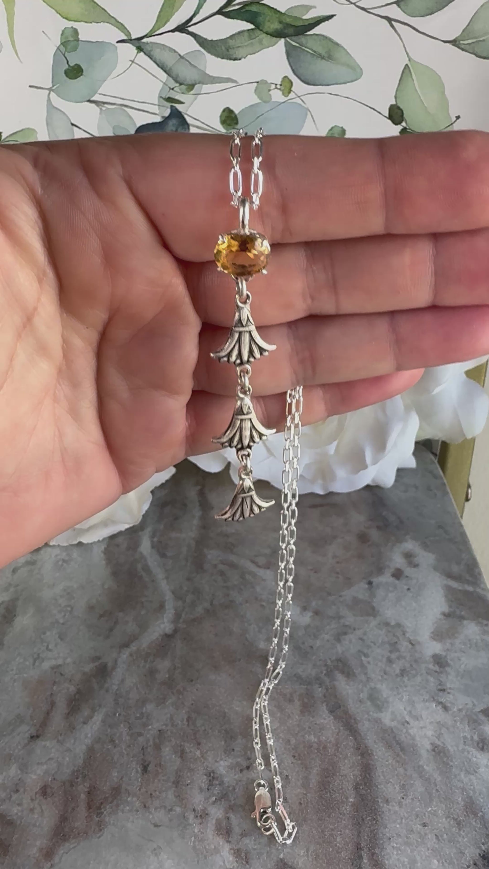 Art Deco Egyptian revival artisan 2.5ct Citrine Papyrus flower necklace in Sterling Silver