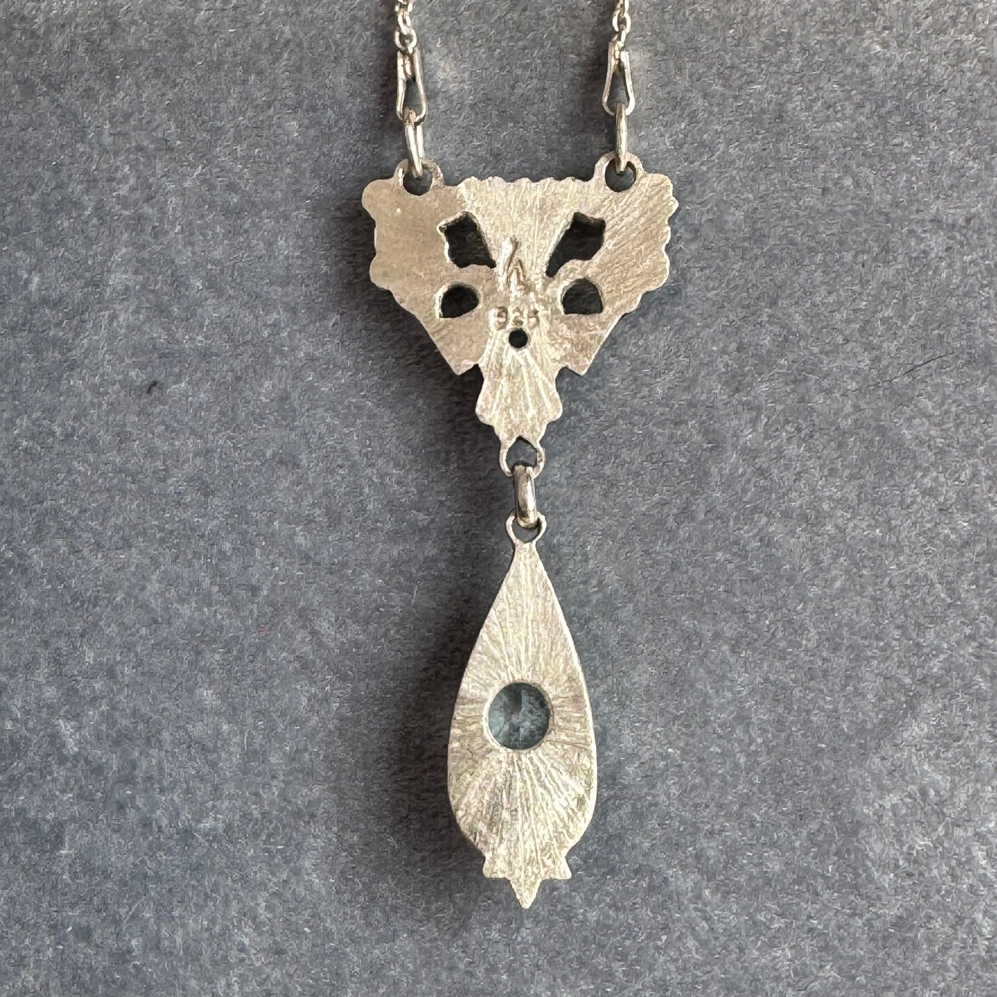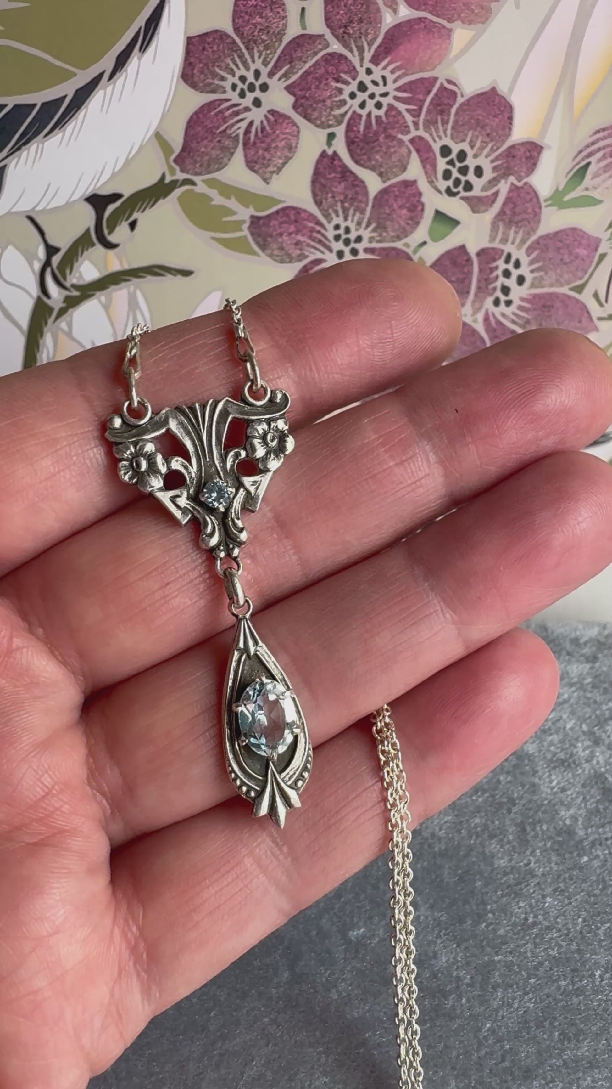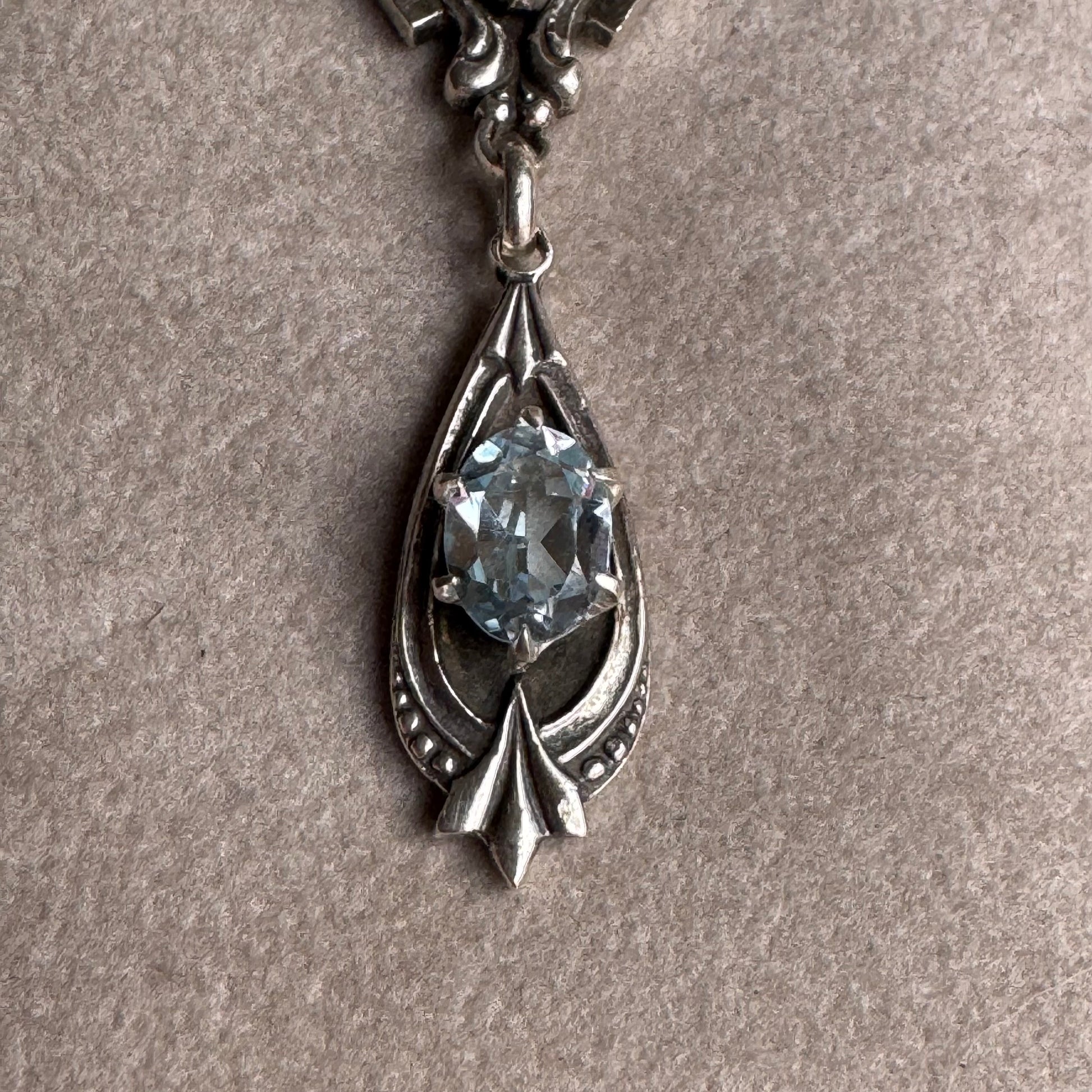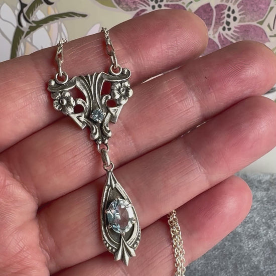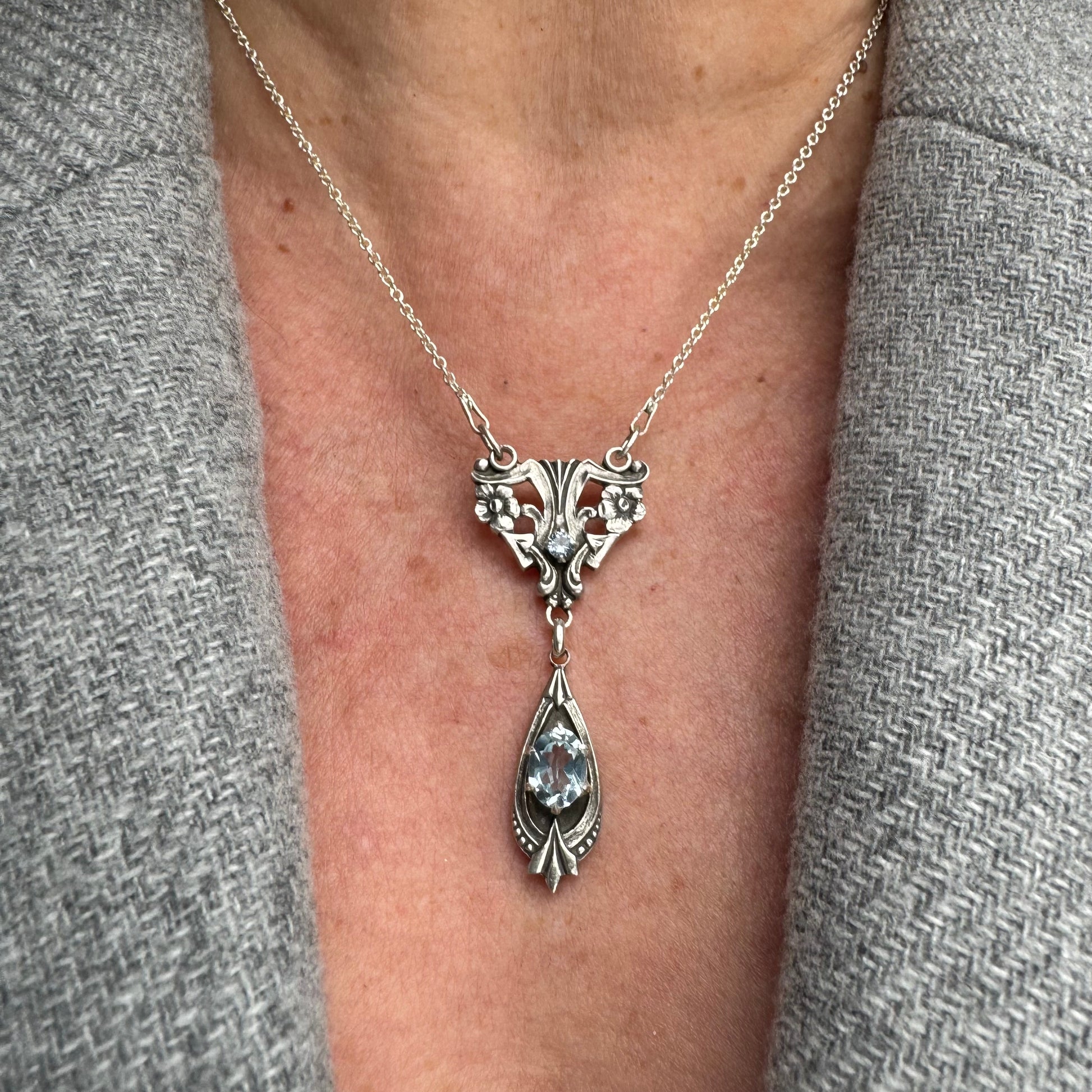 Artisan Art Deco Blue Topaz and Aquamarine Spinel Sterling Silver necklace