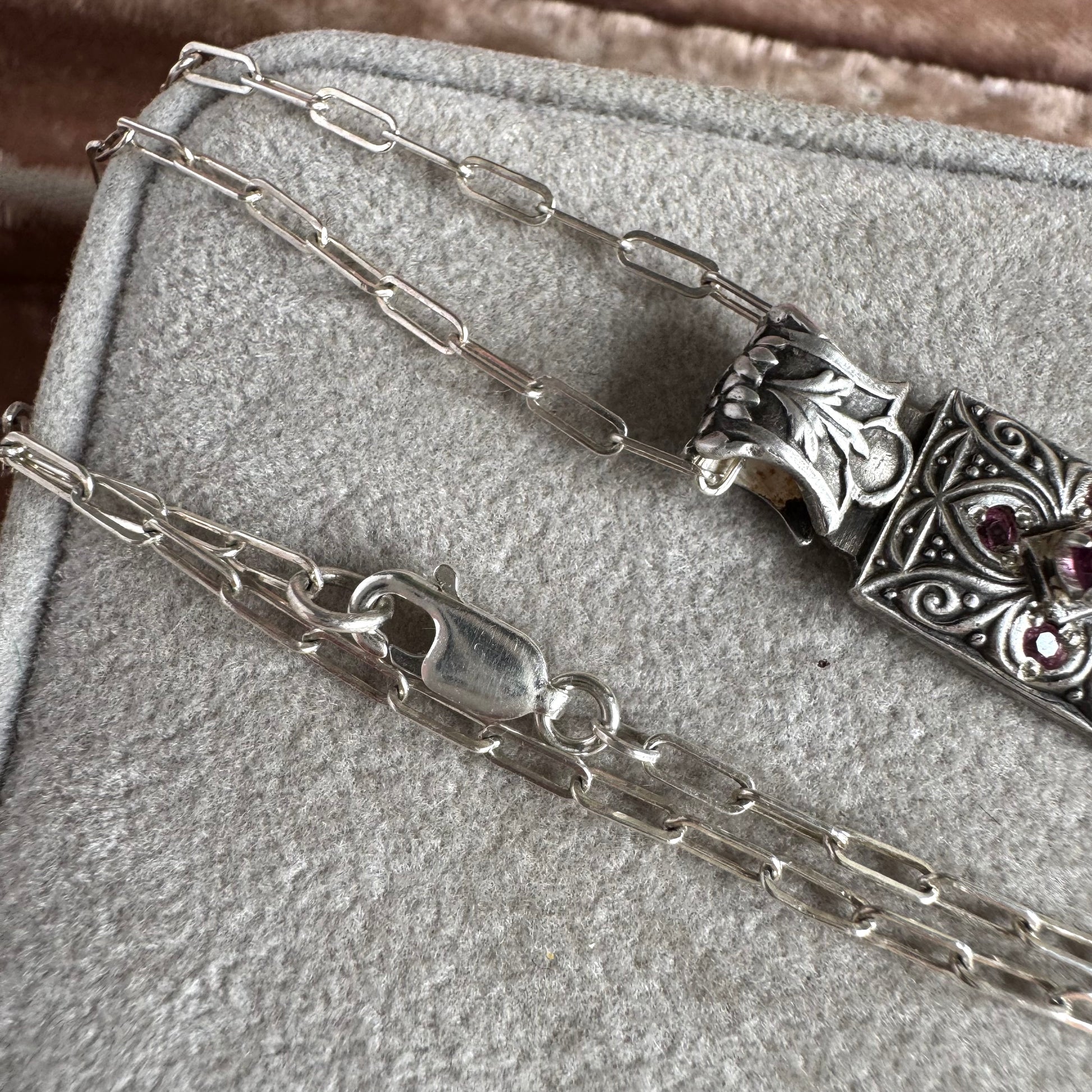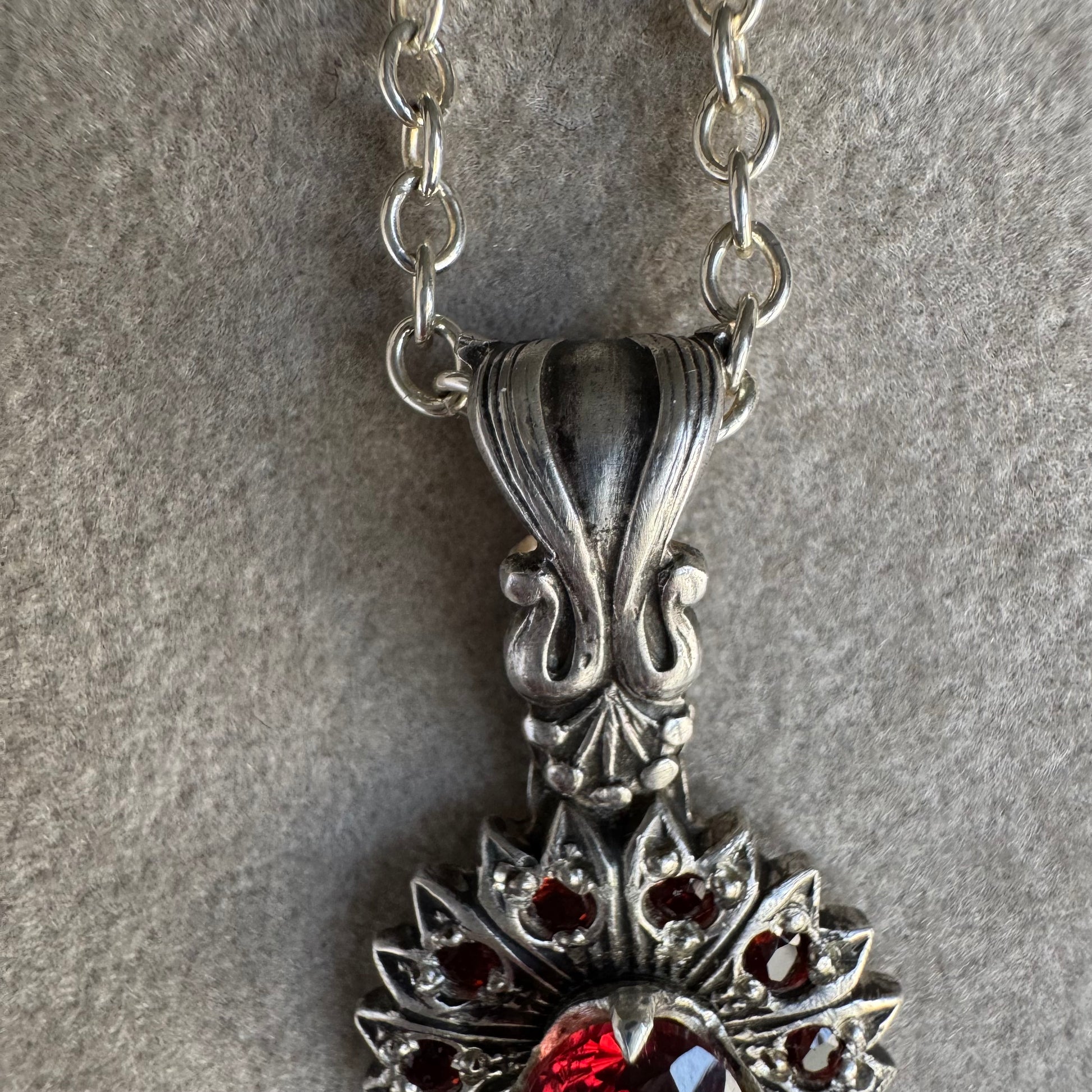 Mozambique Garnet handmade Victorian necklace in Sterling Silver